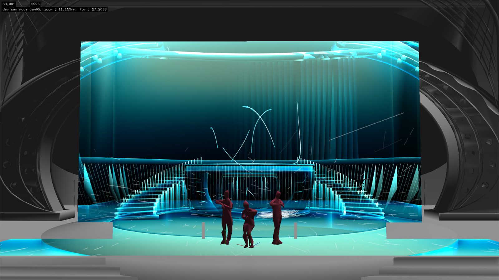 平面的なディスプレイが別の空間につながる窓のように変化する「ダイナミックVRディスプレイ」のLEDディスプレイを一部可動にした演出を行った。可動ディスプレイの数は6面。マーカーを付けて位置をトラッキングすることで、位置に合わせた映像をリアルタイムに生成、送出する。